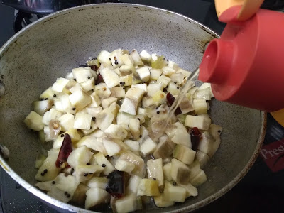This is a simple stir fry prepared with raw banana.It can be prepared with ingredients readily available in the pantry.