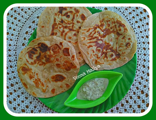 Gonva Pittachi Aalavnu Rotti (wheat flour roti using boiling water) ,This is an almost forgotten recipe which I learnt from my dear mom in law. It is more easily digestible than our usual chapatis. These can be eaten with any side dish, but we eat with simple coconut chutney with green chillies.