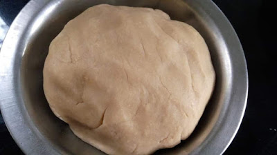 - Switch off the gas. Smear your hands with oil or ghee and mash the dough using fists and knead it very well till it becomes a smooth dough.