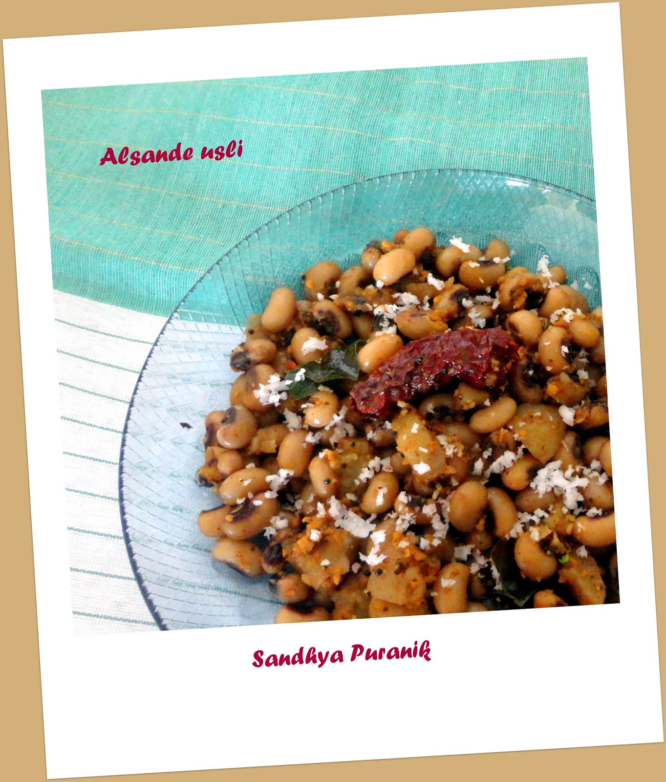 Alsande / Alsando or chawli is a popular pulse amongst us Konkanis..we prepare a whole lot of dishes using these. Me and my co-blogger friends have already shared many recipes using this pulse.Today I am sharing one more recipe which is very simple and quick to make called usli. It goes well as a side dish or can be had as an snack too while you are fasting.Do try and enjoy.
