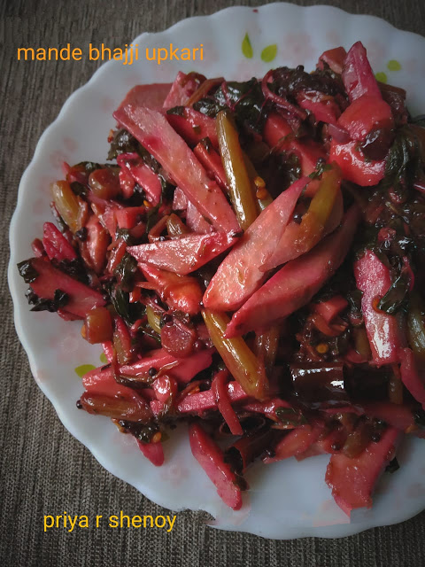 I have learnt so many unique recipies from my mother in-law… this combo upkari with mande and bhajji ( arbi, amaranthus) is one of them…You too will simply love this combo a lot… this tastes even more great if you add a raw banana too…. so this post dedicated to my masterchef, my Mother in-law !💖