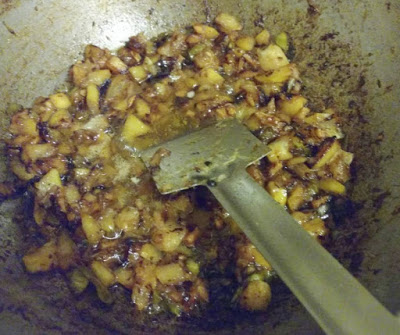 You can notice that it becomes mushy and colour changes to dark. Now add salt and saute for  a few more  minutes.