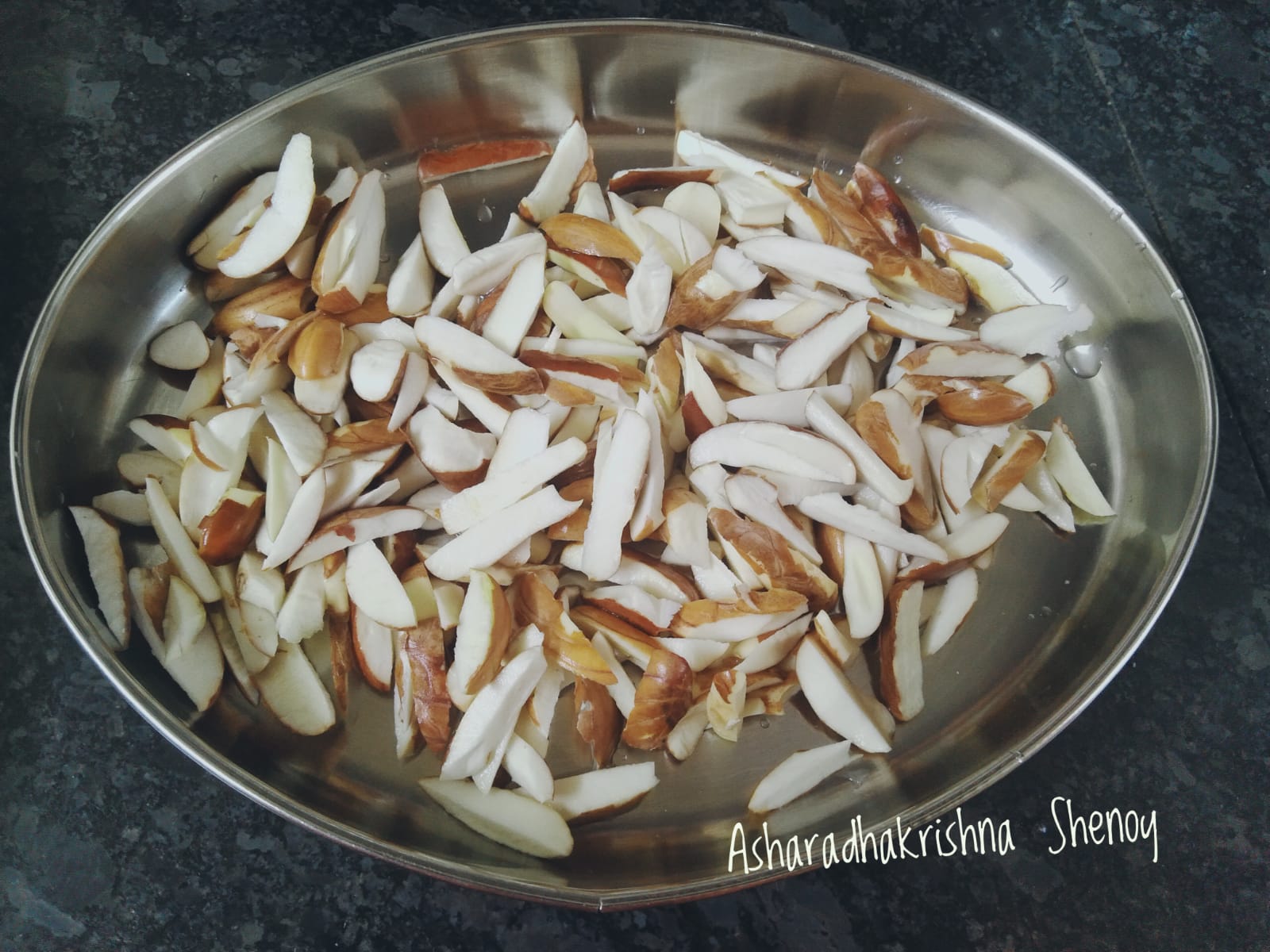 - Tender or matured jackfruit seeds – 20-25 numbers, thinly sliced (remove the white thick skin but retain the brown skin)
