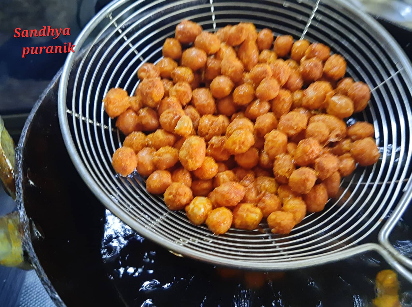 - The peanuts splash / splutter while getting fried so be careful while deep frying and dropping them in oil.